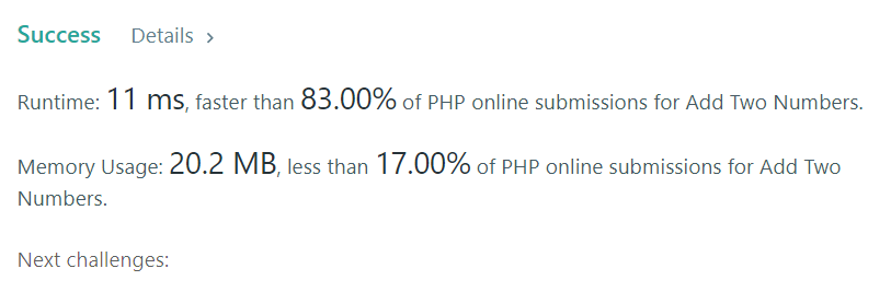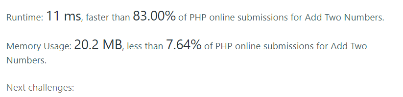 $l1,$l2鏈表中的數字是以倒敘的方式儲存,所以這代表鏈表的最低位為頭部節點,所以如果我們要將兩個相加的話,大概的程式碼如下 - 不過還要考慮相加時的進位的問題,必須在下一個節點相加時把進位值補上。