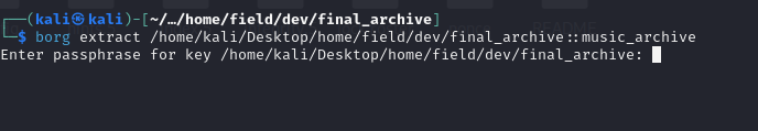 使用borg進行還原borg extract /home/kali/Desktop/home/field/dev/final_archive::music_archive