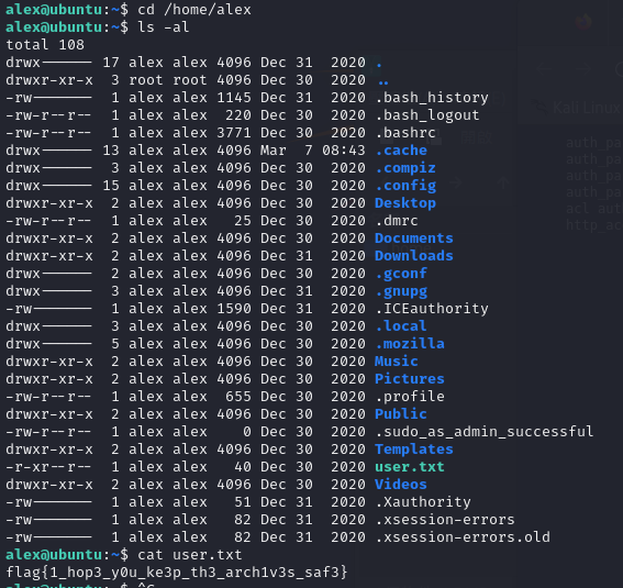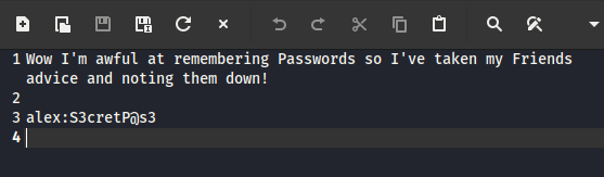 點進去資料夾裡,尋找一個Documents文件夾,裡面有一個note.txt檔案,裡面有ssh帳密