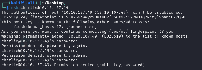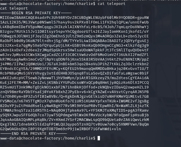不過在/home/charlie目錄中的teleport檔案似乎金鑰,雖然不知道是誰的,把金鑰的內容複製下來使用ssh登入試試