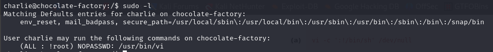 使用sudo -l看看charlie能用sudo能執行什麼權限
