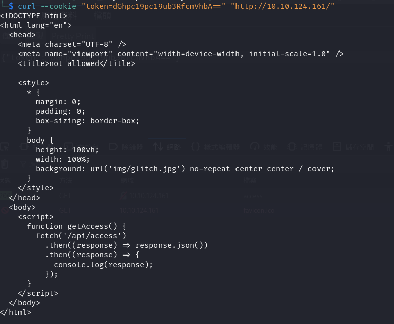 Cookie 在 暗示這我需要 token 才可以請求,當然這個也有可能是騙我的....,還是先檢查一下剛剛JS裡面請求的API,看看有什麼線索