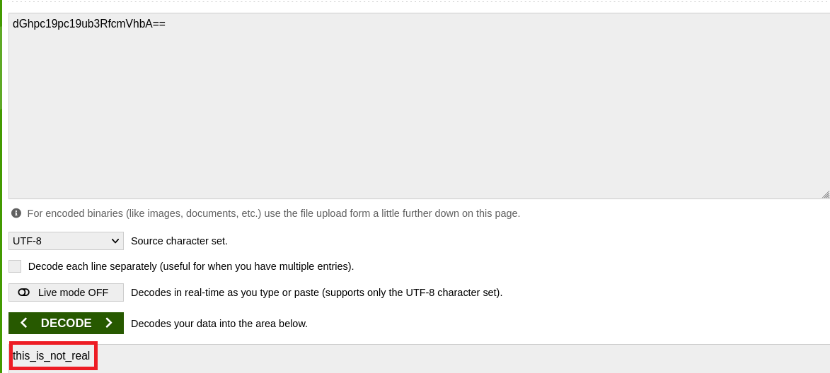 我決定把那串Base64解碼試試,解碼結果告訴我this_is_not_real